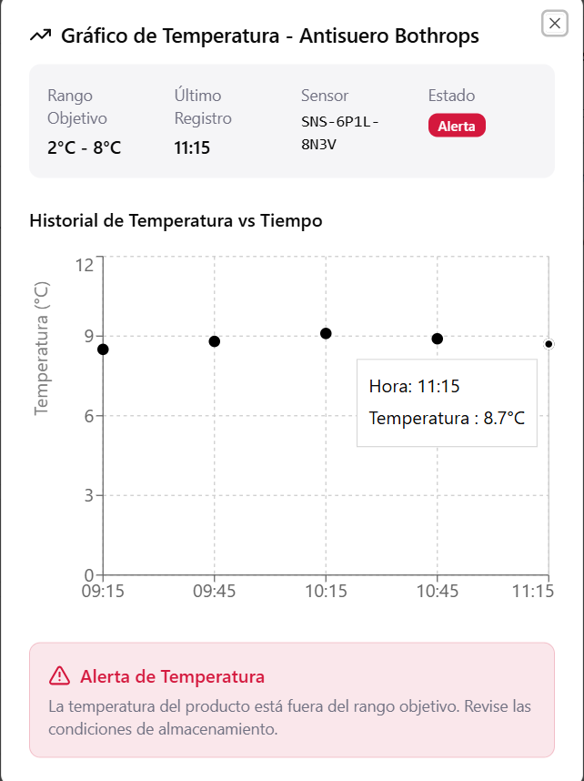 Supervisa constantemente la temperatura con sensores avanzados que envían datos en tiempo real para prevenir deterioros.